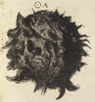 But of course it’s not quite as straightforward as that – just because Hooke provides the first evidence of a word doesn’t mean that he coined it. I doubt he invented the ‘door-matt’, for example (neither the word nor the item itself). Nor, sadly, did he invent ‘penumbra’ for ‘partially shaded area’ – apparently the astronomer Johannes Kepler used this in a Latin treatise in 1604, but Hooke seems to have been the first to transfer it into English. Hooke was very fond of the useful word ‘globule’ (round drop of liquid, or small round particle), but so were many of his fellow experimental philosophers. Given that Robert Lovell also used ‘globule’ in print in 1661, the same year that Hooke is cited with the first usage, it seems likely to have been in circulation before that. (Hooke is also credited with the first usage of ‘spherule’ for ‘a little sphere’ – obviously there were a lot of little round things needing to be discussed.) Hooke may have invented ‘biocular’ (having two eyes), but his fellow microscopist Henry Power had already used ‘monocular’ so again this may not count.