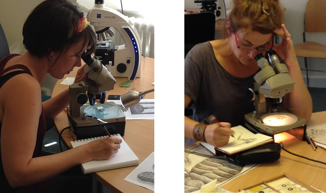 21 July 2014 Tabatha and Anne-MarieIn the afternoon, Amy Shelton gave the artists free rein and there were some beautiful sketches developed as well as wide-ranging conversation about Hooke, Micrographia and the microscopic specimens. I think all the participants, artists and writers, could happily have spent twice as long looking at the slides and thinking about how to interpret or represent them.